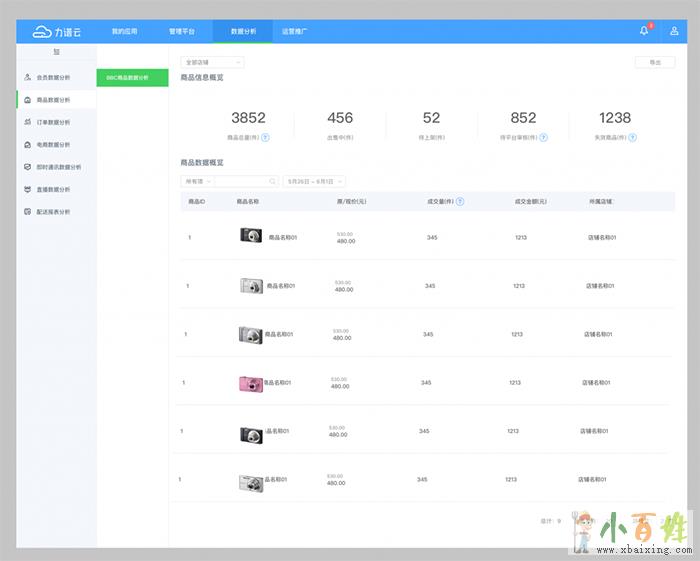 功能描述:新增BBC商品分析报表,平台方可根据店铺筛选,查看每个店铺的数据