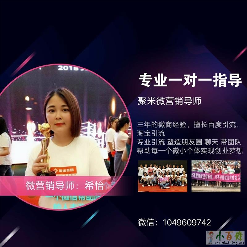 聚米微商大学金牌导师,婧氏品牌招商负责人我是婧氏牙膏联合创始人希怡:1049609742 我是希怡80后宝妈创业者,分享妇科知识,微商生活微商干货原文www.xbaixing.com。